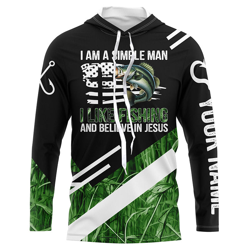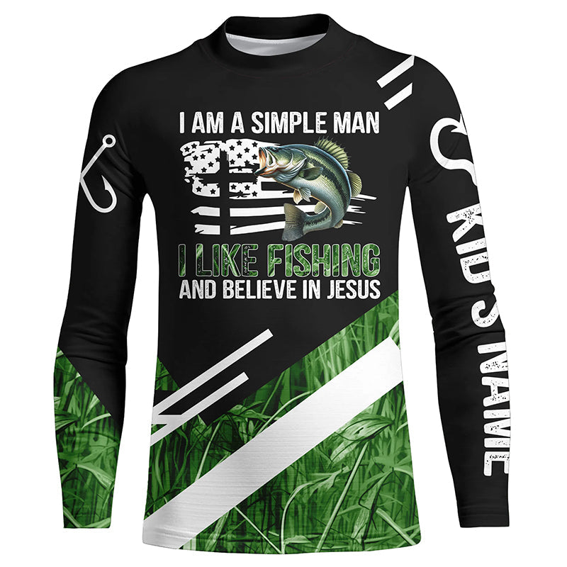 Bass fishing green camo I am a simple man I like fishing and believe in Jesus Custom fishing shirts NQS4245