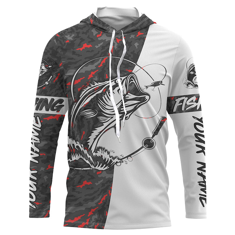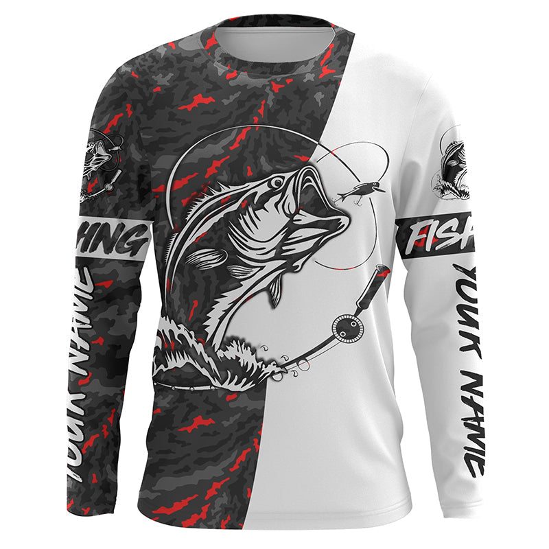 Personalized Bass Fishing Jerseys, Largemouth Bass Tournament Fishing Shirts | Red And Black Camo IPHW3992