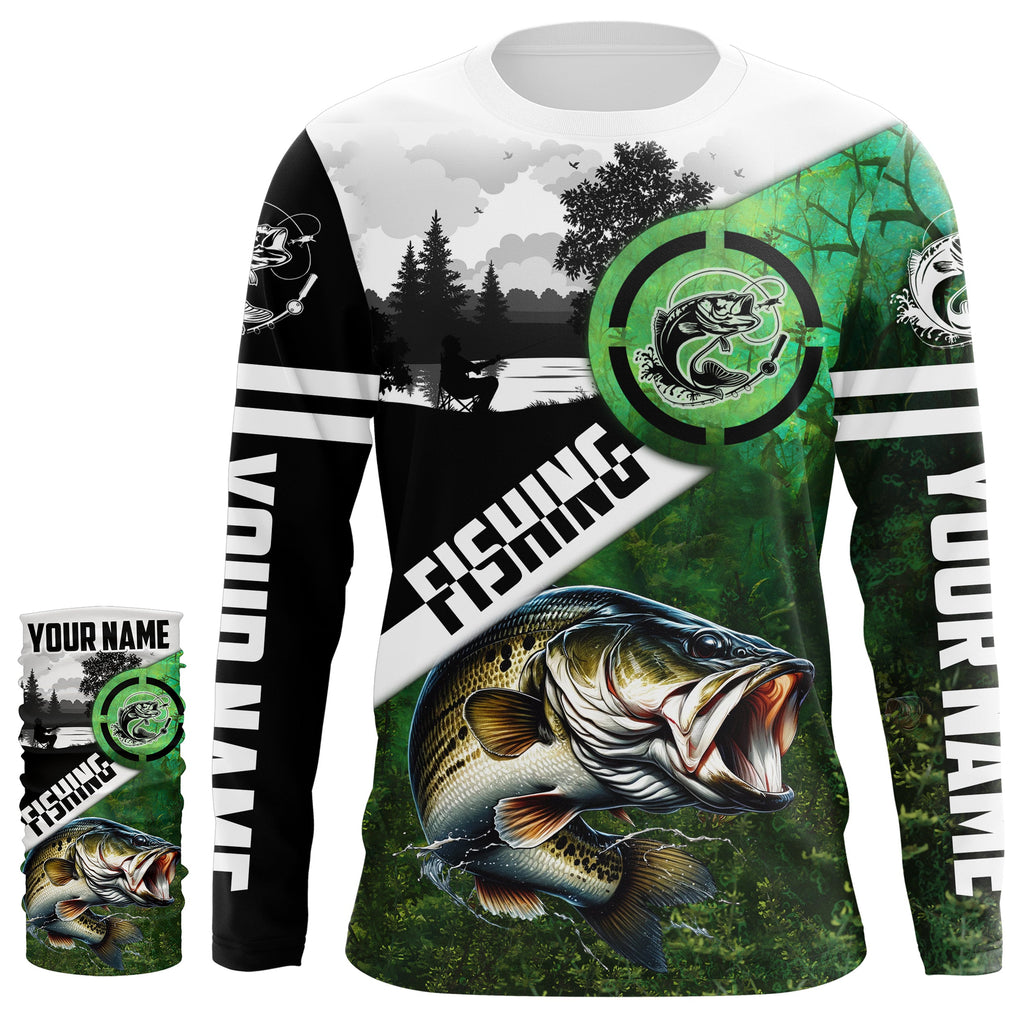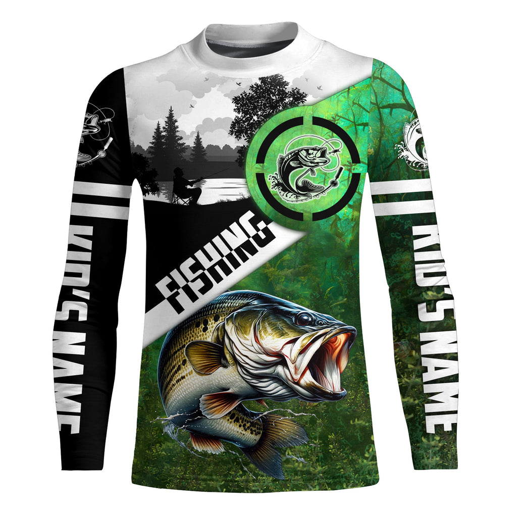 Largemouth Bass Fishing green performance fishing shirt Custom Bass fishing shirts jerseys NQS4140