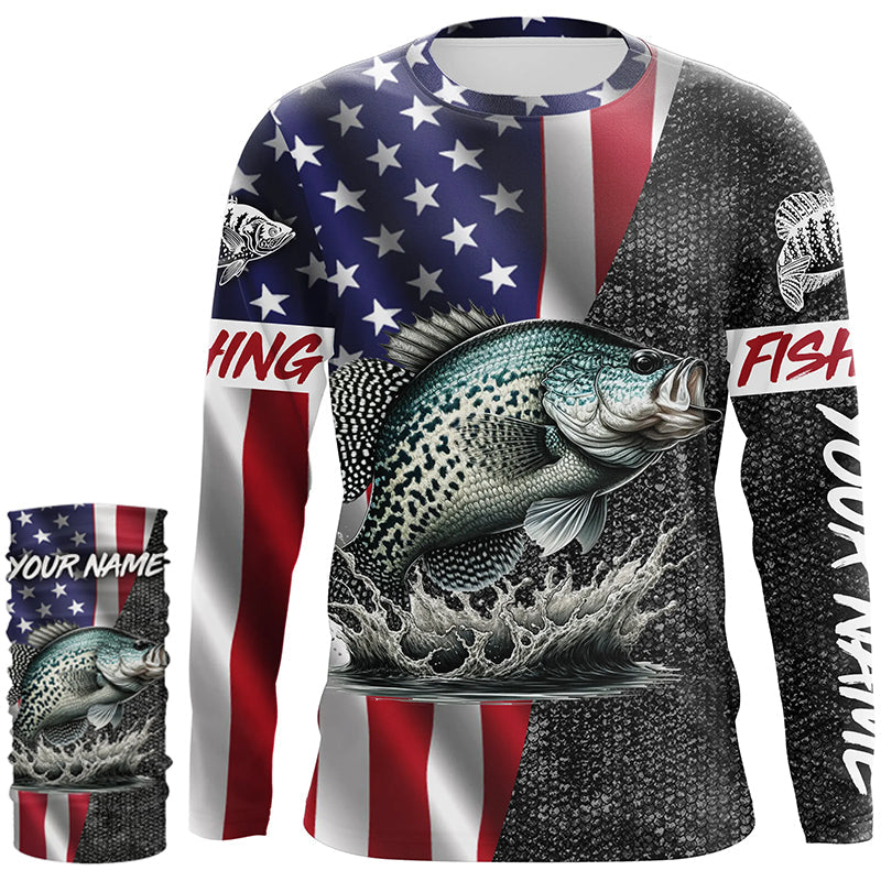 American Flag crappie Fishing Custom long sleeve Fishing Shirts for men personalized Fishing jerseys NQS4958