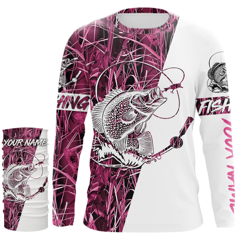 Crappie Fishing Pink Camo Custom Name 3D All Over Printed Shirts Personalized Fishing gifts NQS347