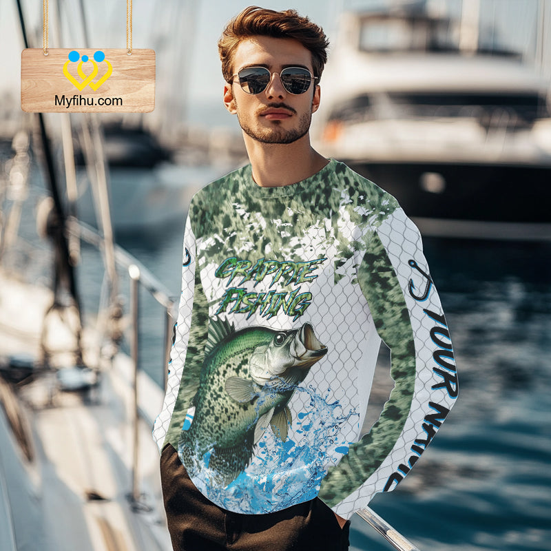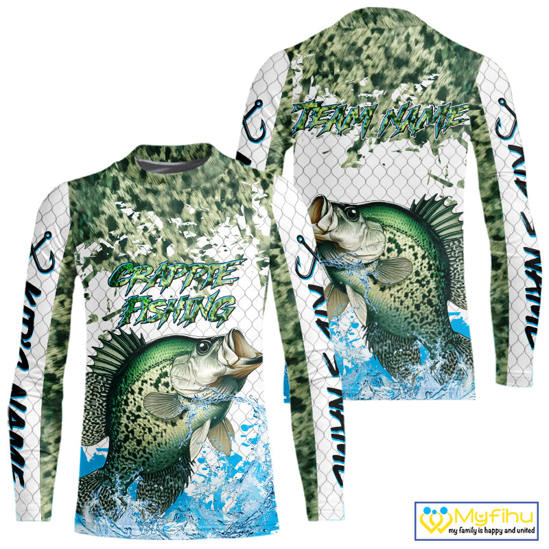 Crappie fishing green scales UV protection custom hooded sun shirt, Crappie fishing jerseys NQS10228