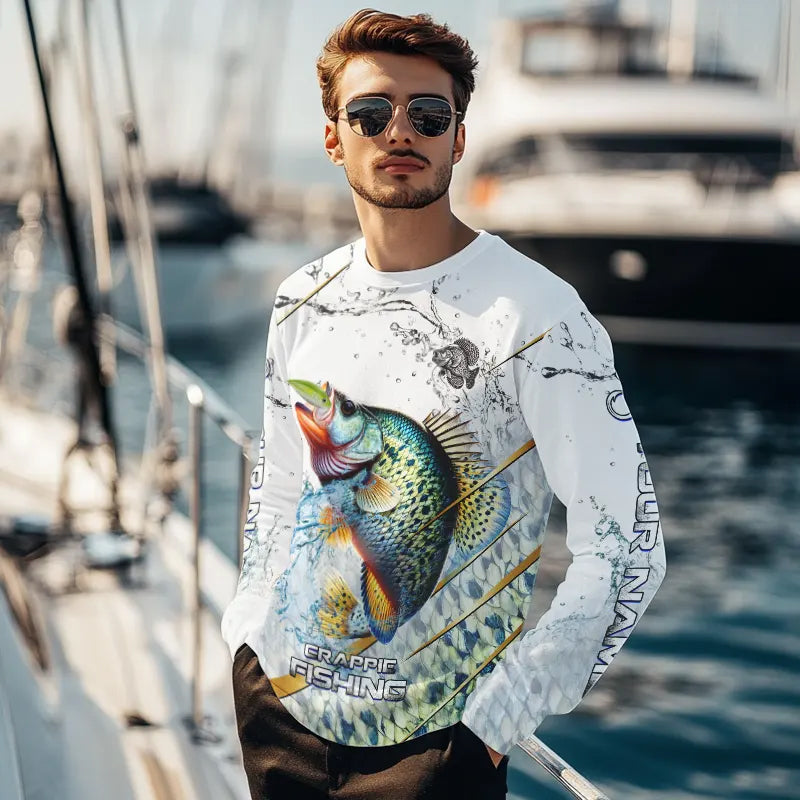 Crappie Green scales water Custom White Long Sleeve Fishing Shirts, Personalized Crappie Fishing Gifts NQS9646