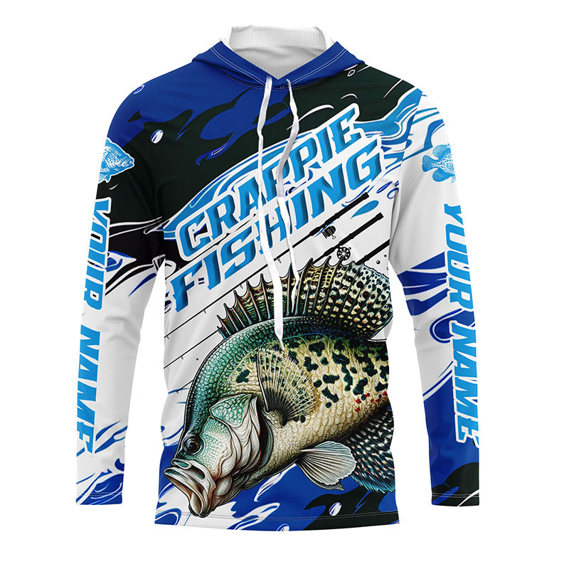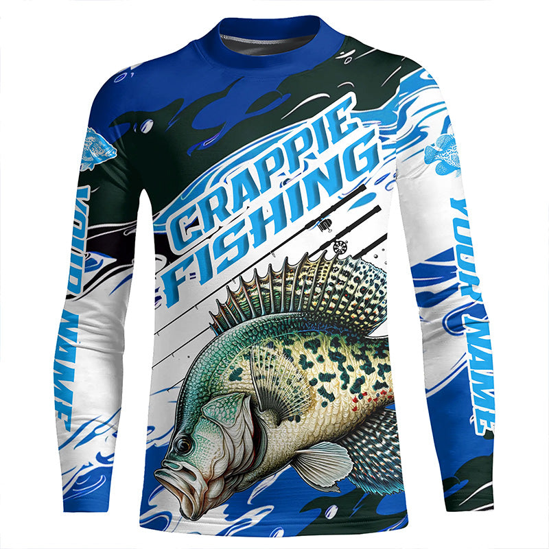 Custom Crappie Fishing Jerseys, Crappie Long Sleeve Tournament Fishing Shirts | Blue Camo IPHW6127