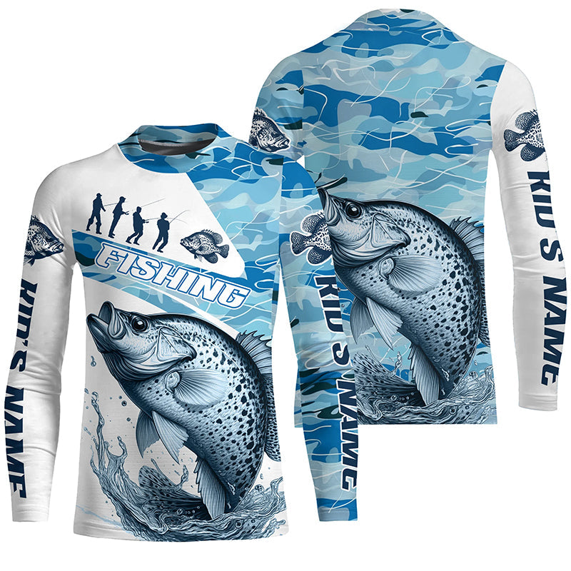 Crappie Fishing Custom Long Sleeve Tournament Shirts, Blue Camo Crappie Fishing Jersey For Fisherman IPHW6320