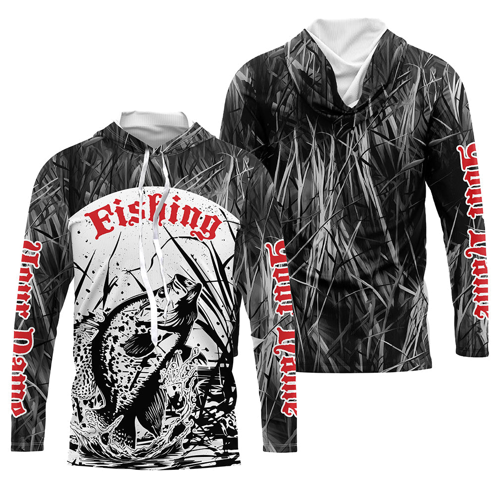 Crappie Fishing Gray Camo Custom 3D Full Printing Shirts, Crappie Long Sleeve Fishing Shirts IPHW6645