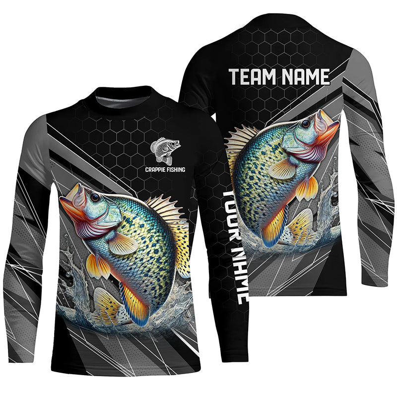 Personalized Black camo Crappie Fishing Jerseys, Crappie Long Sleeve Fishing Tournament Shirts NQS8448
