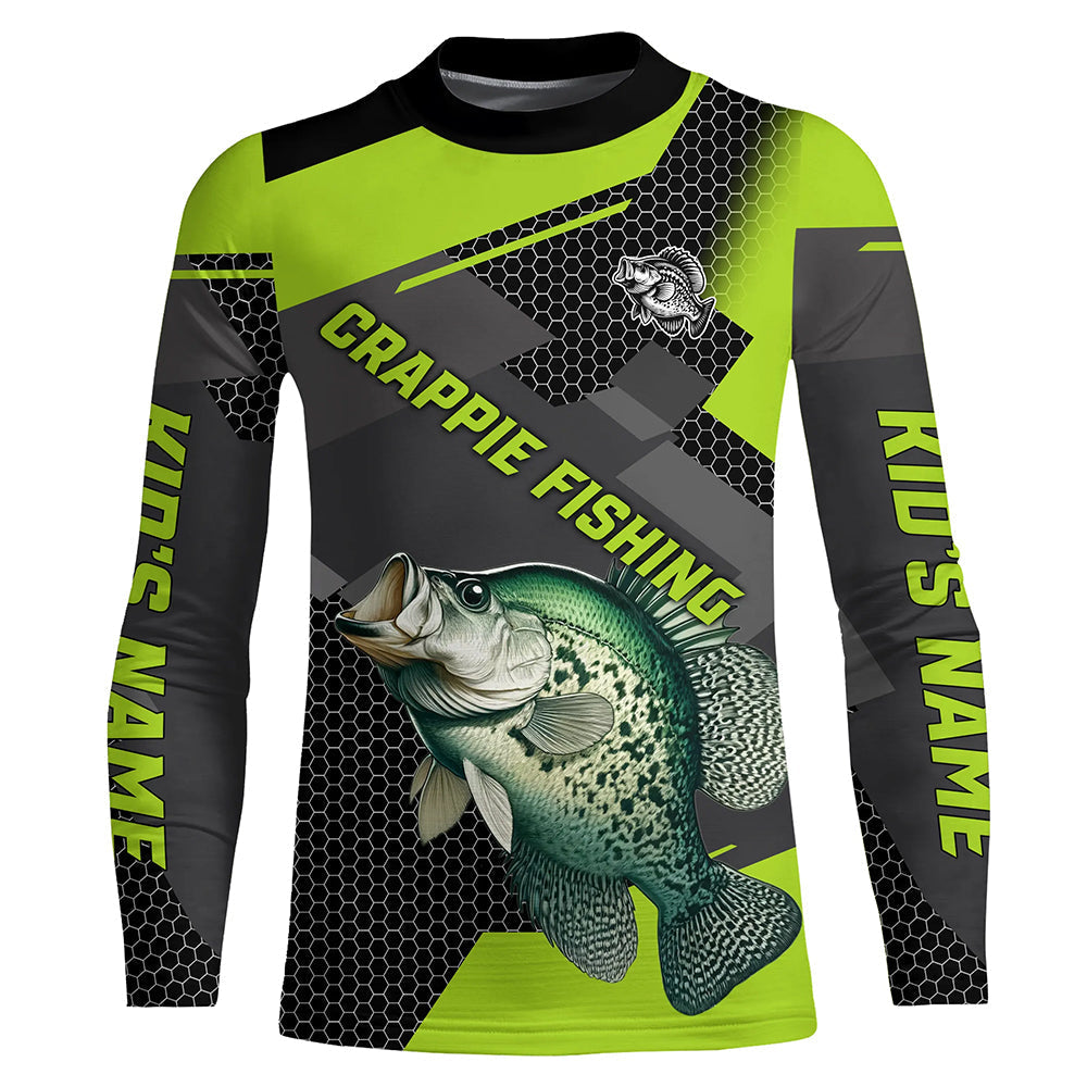 Personalized Crappie Fishing Jerseys, Crappie Long Sleeve Fishing Tournament Shirts | Green NQS7780
