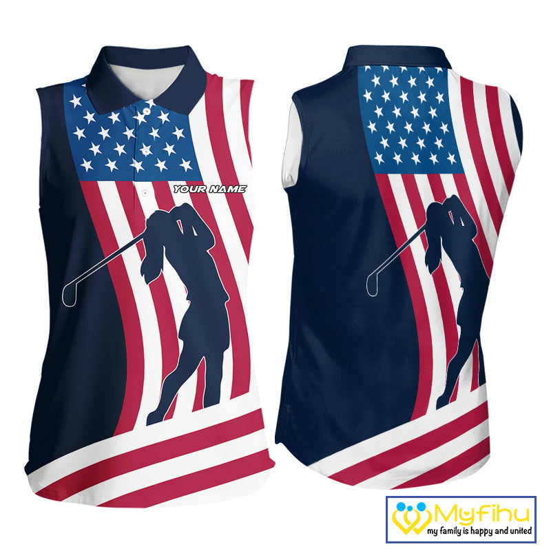 American Flag Sleeveless Polo Shirt custom women's patriotic polo shirts, best golf shirts for ladies NQS10253
