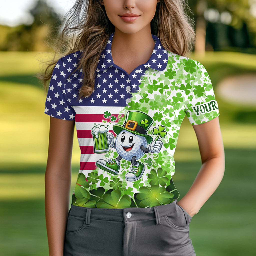 American flag St Patrick day shamrock golf pattern custom Women golf polo shirts, golf outfits ladies NQS9580