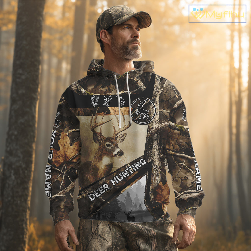 Beautiful Whitetail Deer Hunting Forest Camo 3D Custom Name Shirts for Men, Deer Hunting Gifts NBT259