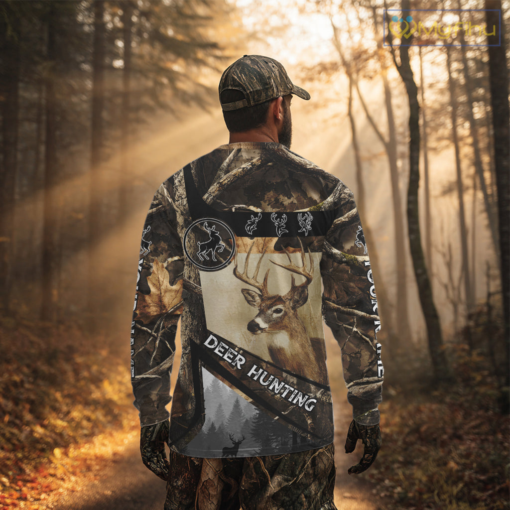 Inspired by the thrill of the hunt and the beauty of the outdoors, this shirt combines durability, comfort, and a unique hunting vibe. Customize it with your name or preferred design elements — from deer graphics to scenic landscapes — to create a one-of-a-kind piece. A perfect gift for passionate deer hunters and outdoor lovers, especially during hunting season.