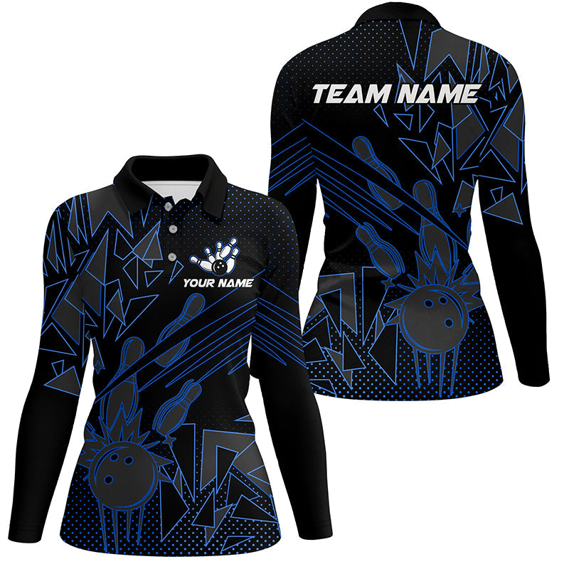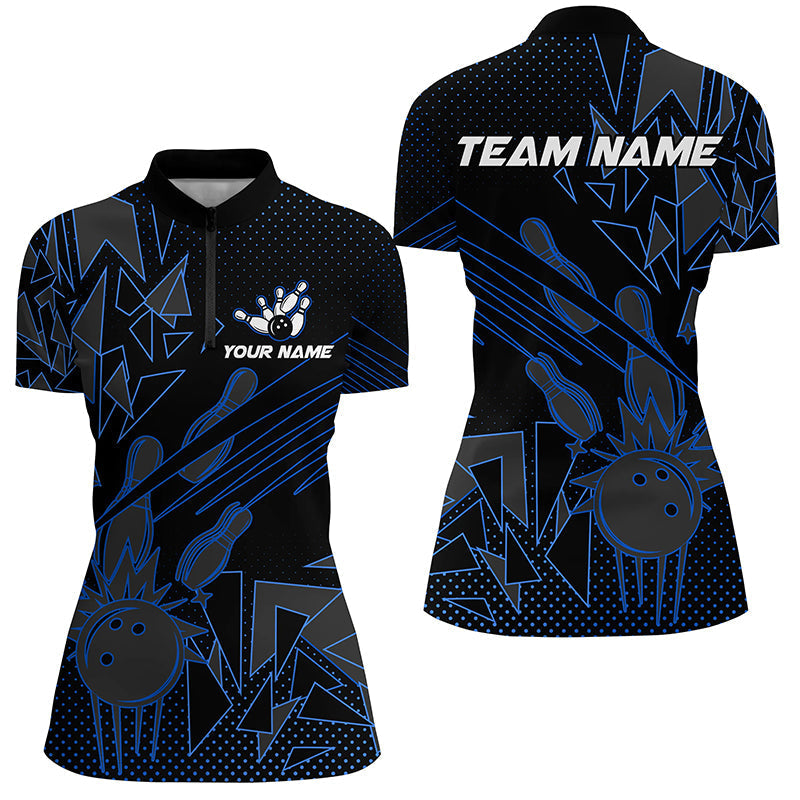 Black and Blue Bowling Polo, Quarter Zip shirts for Women custom Team Bowling Jerseys, Bowlers Outfit NQS8762