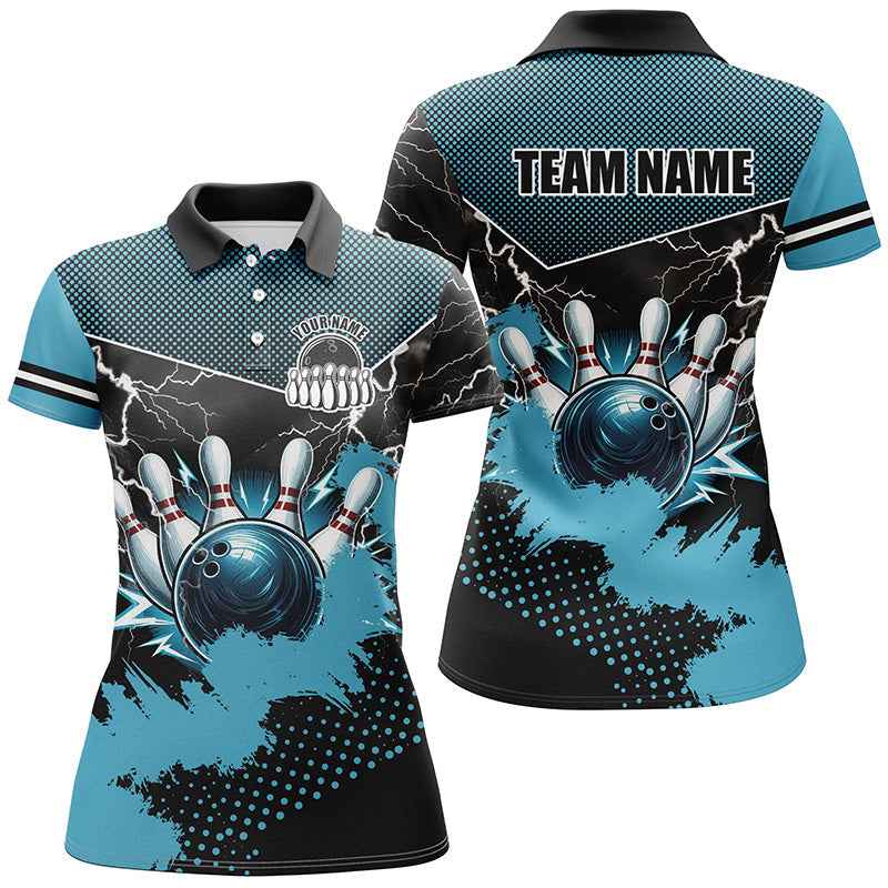 Black and Blue Grunge Lightning Thunder Bowling Shirts For Women Custom Bowling Team League Jerseys NQS8803