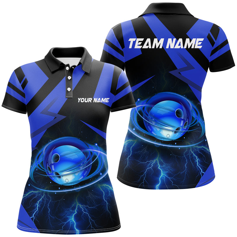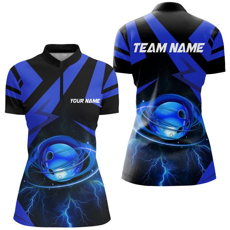 Black and Blue Lightning Thunder Bowling Ball Womens Bowling shirts custom Team Bowling League Jersey NQS8754