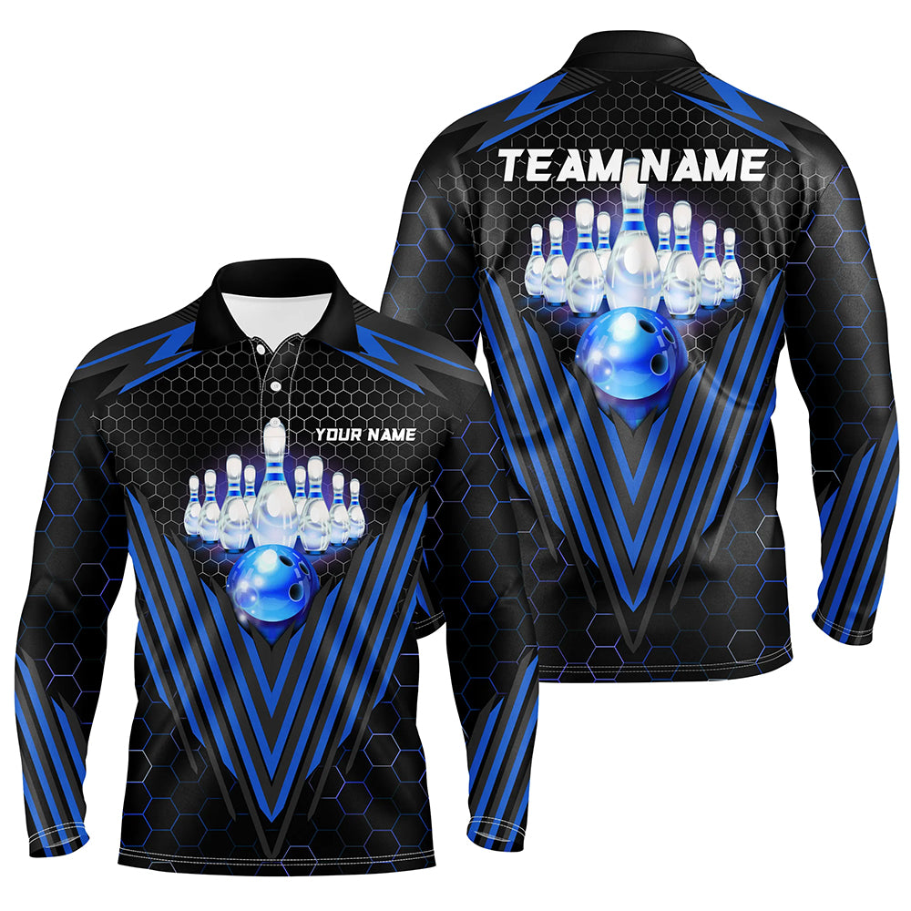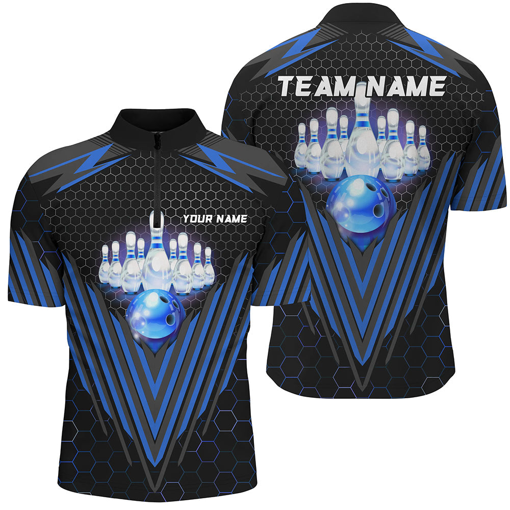 Black and Blue Mens Bowling Polo, Quarter zip shirts Custom Team Bowling Jerseys, Bowling uniforms NQS8976