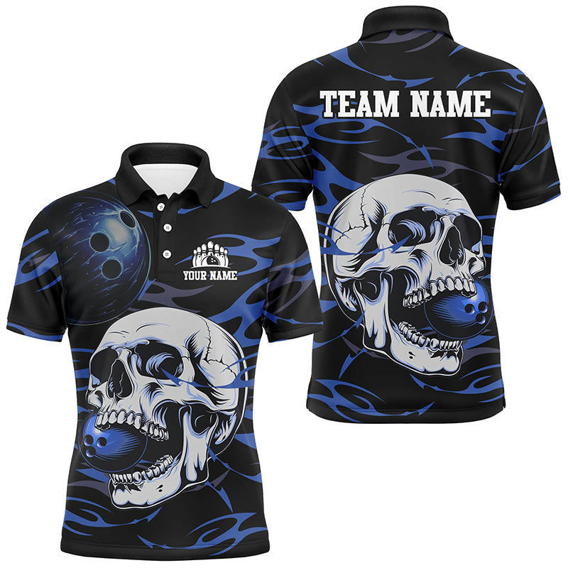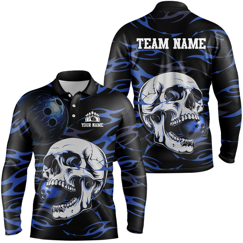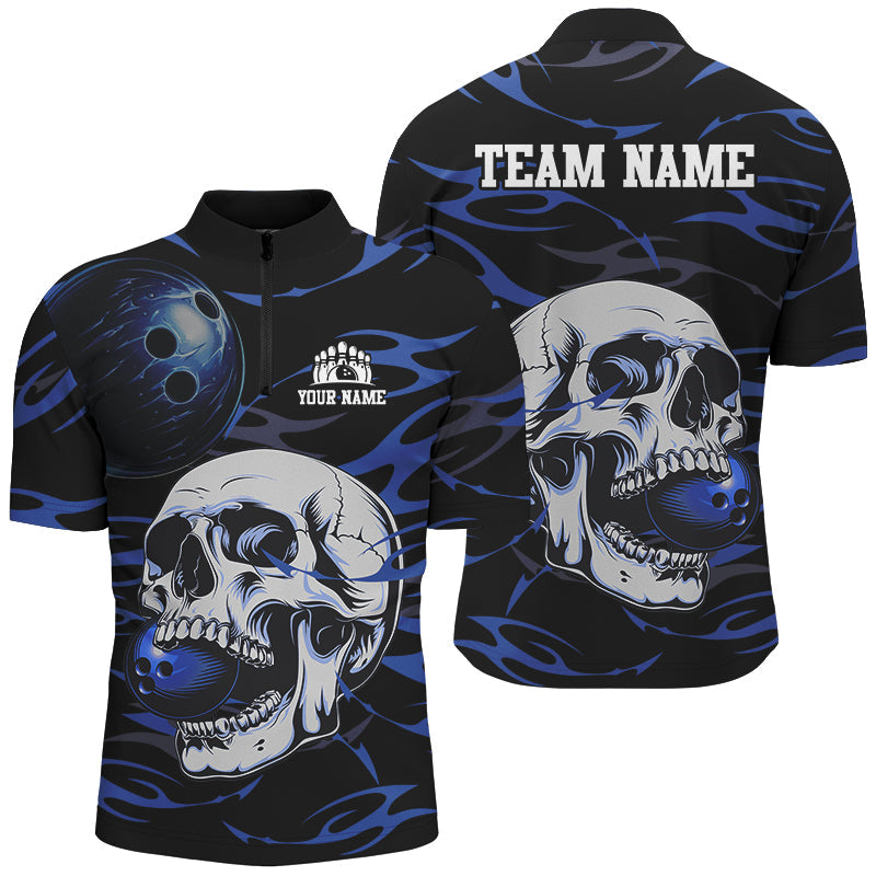 Black and Blue Skull Bowling Shirts For Men Custom Name and Team Name Bowling Jerseys Bowlers Outfit NQS8891