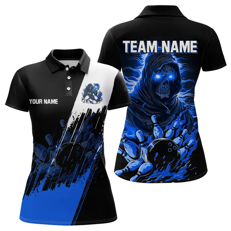Black and Blue Skull reaper bowling jerseys Polo, 1/4 Zip Shirt for Women Custom Bowling Team shirts NQS9278