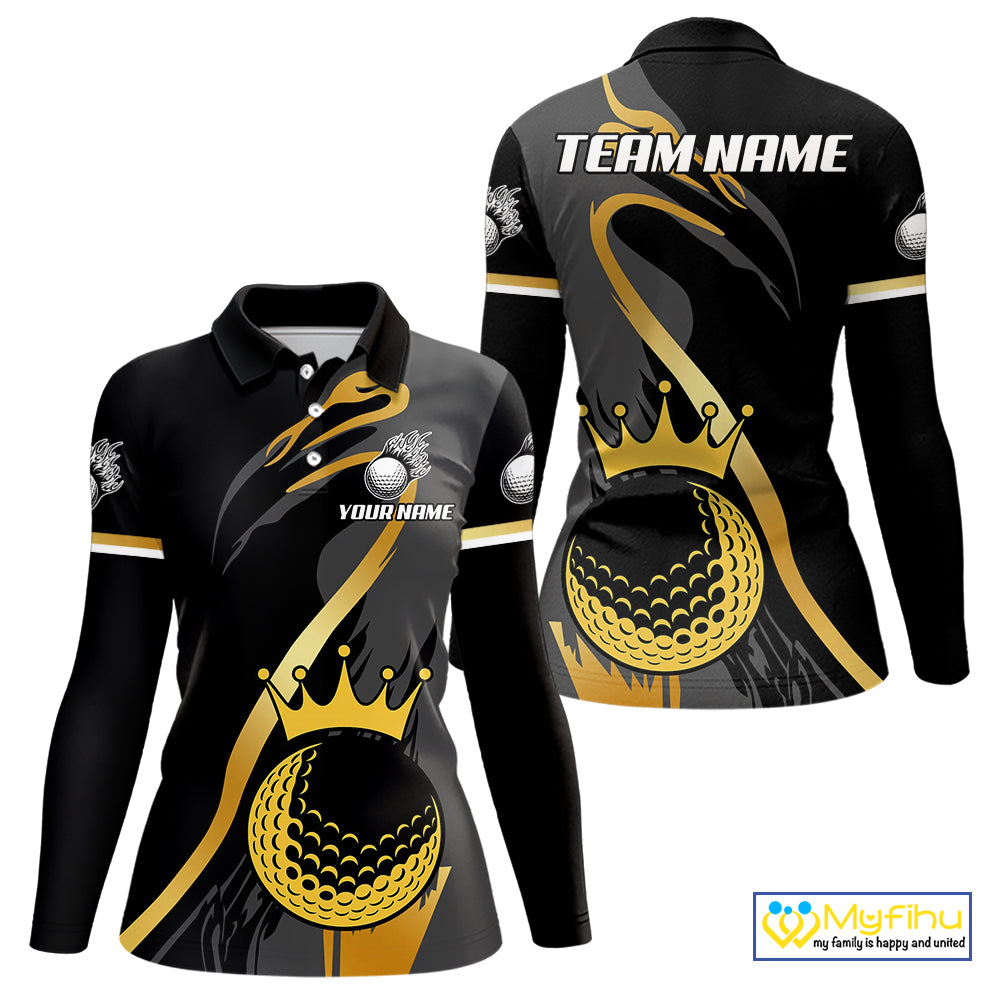 Black and Gold Crown Golf ball Women's golf polo shirts custom team golf tops for ladies NQS10757