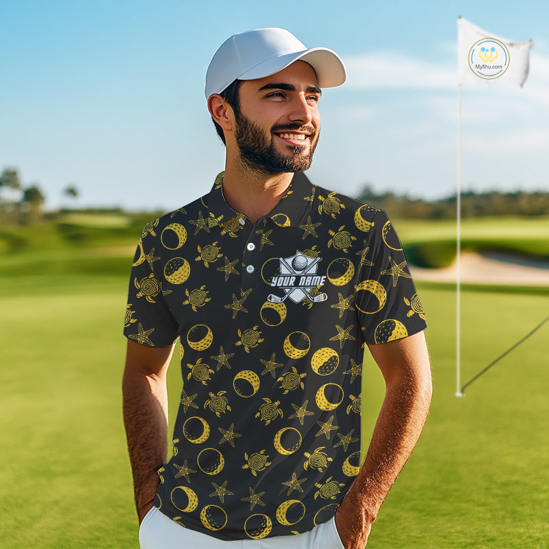 Black and Gold golf pattern Men golf polo shirts Custom best mens golf wear, personalized golf gifts NQS10130