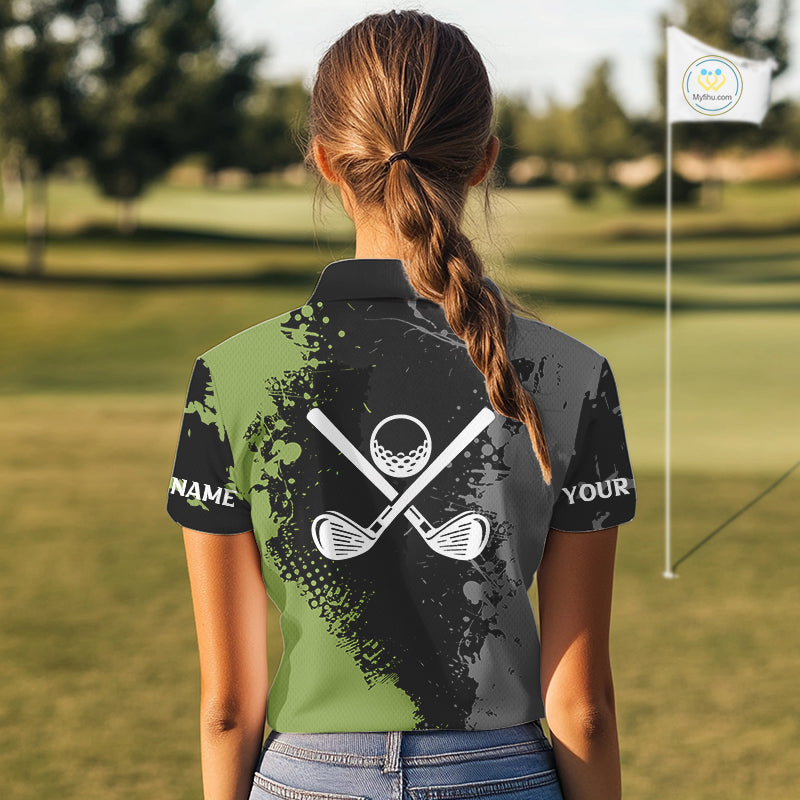Black and Green Camo Golf Polo shirt for Women Custom golf team uniform golf outfit NQS9797