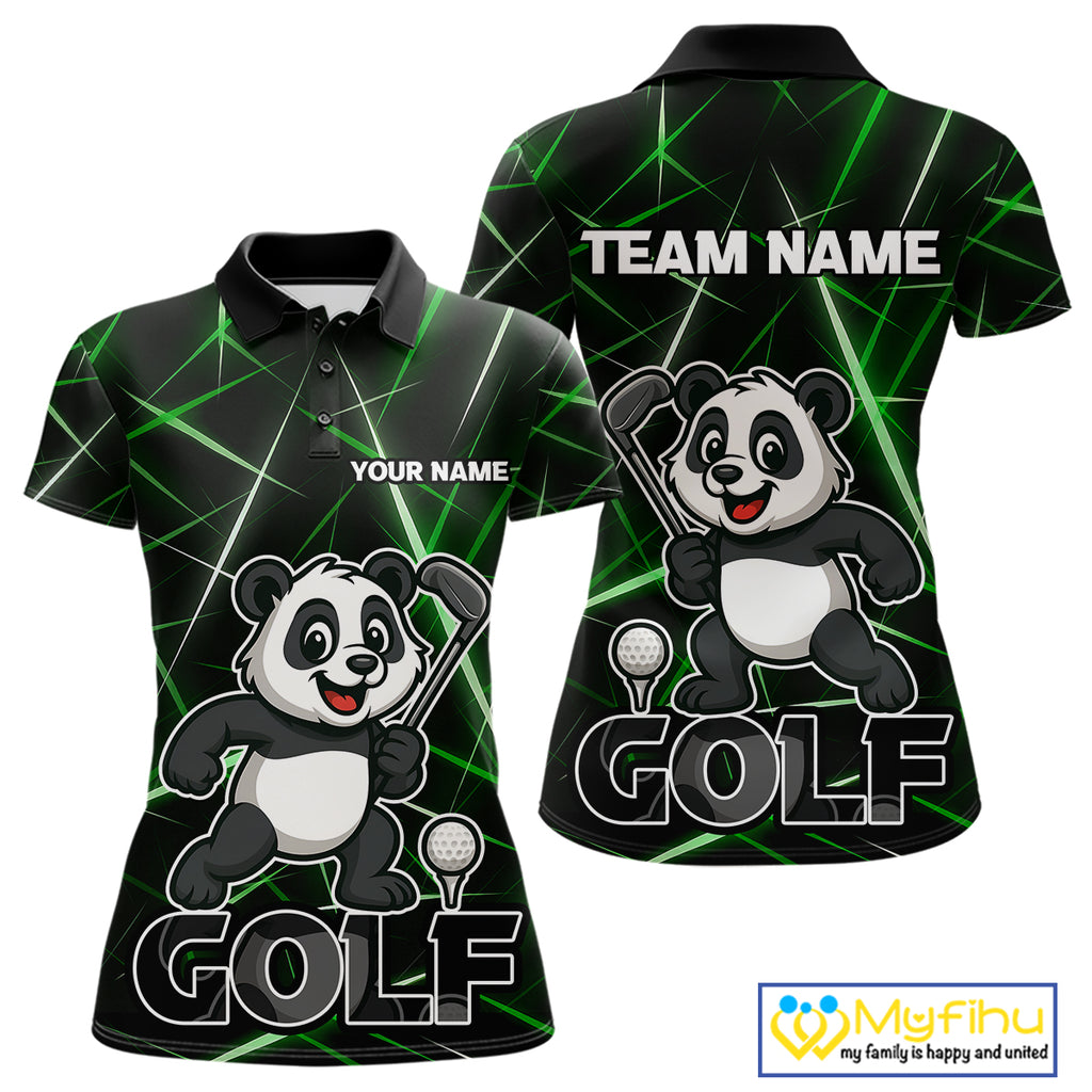 Black and Green Funny Panda Playing Golf Polo Shirt For Women Custom ladies golf clothes golf gift NQS10740