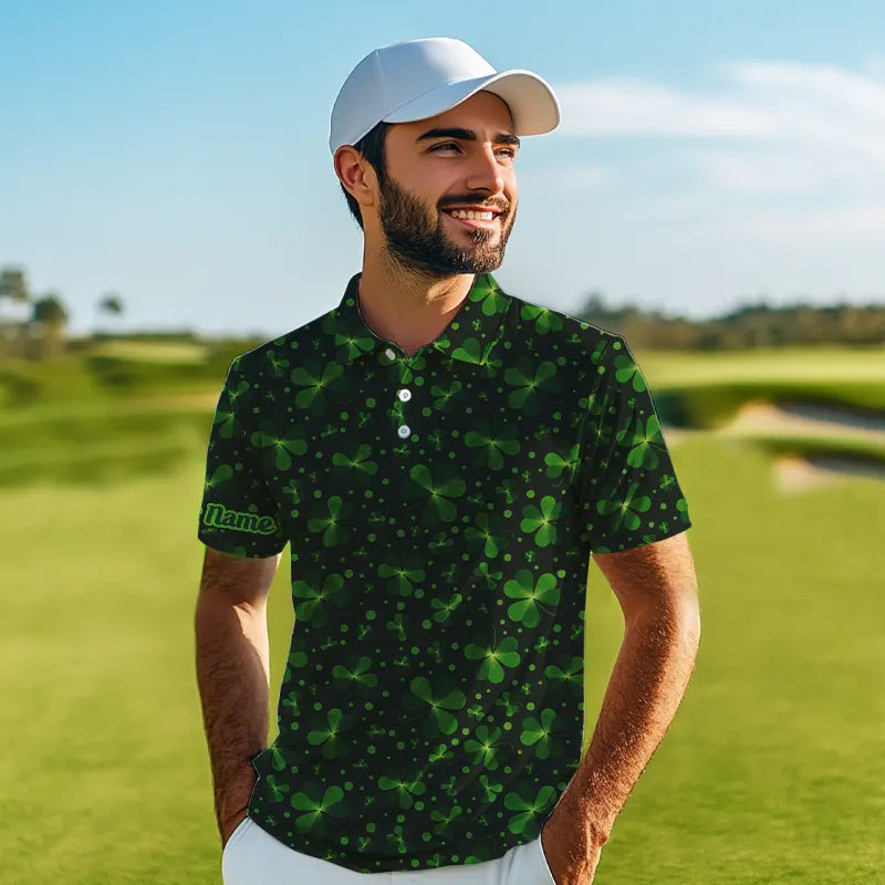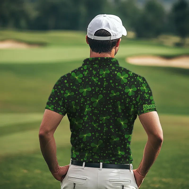 Black and Green shamrock pattern Lucky Men polo golf shirts Custom St Patrick Day team golf apparel NQS9648