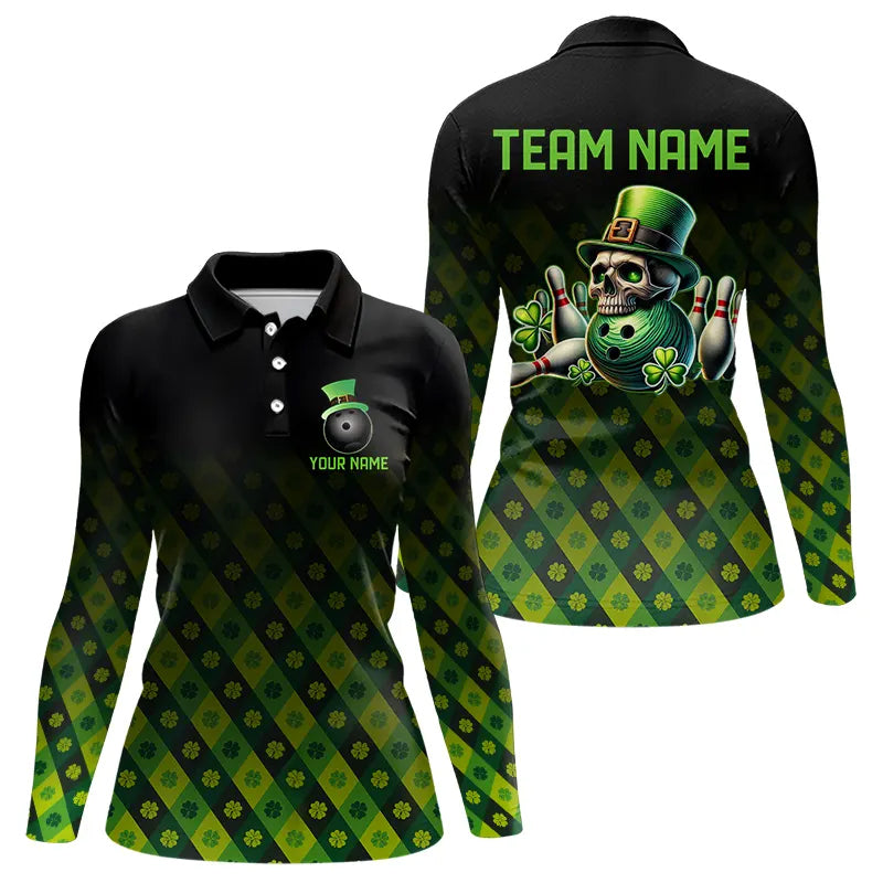 Black and Green Skull clover pattern Lucky Bowling shirts for Women Custom Bowling Team league Jerseys NQS9339