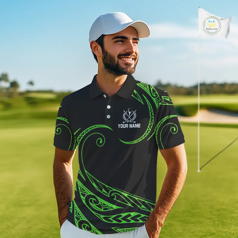 Black and Green Tribal Pattern Golf Ball Mens Golf Polo Shirts custom unique mens golf apparel NQS9820