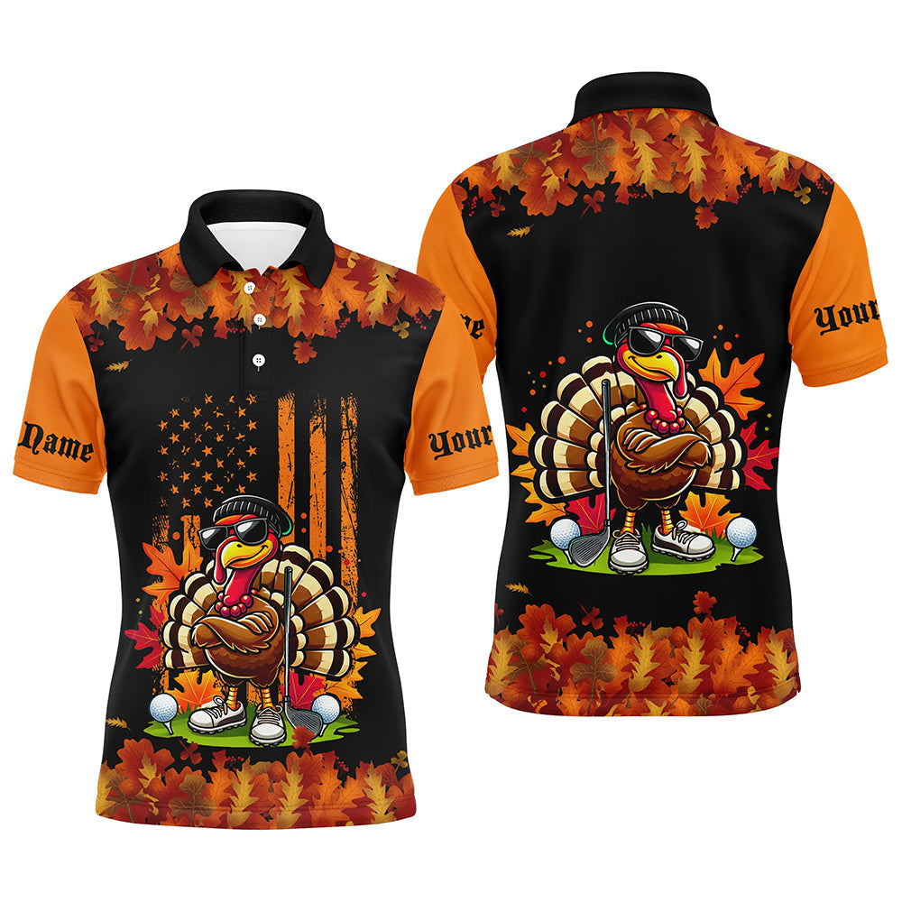 Black and Orange Autumn American Flag Thanksgiving Turkey custom Men golf polo shirts unique golf gift NQS8674