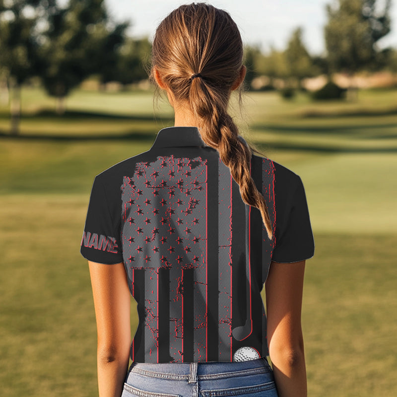 Black and Red American flag Women golf polo shirts Customize patriotic golf shirt for ladies NQS9413