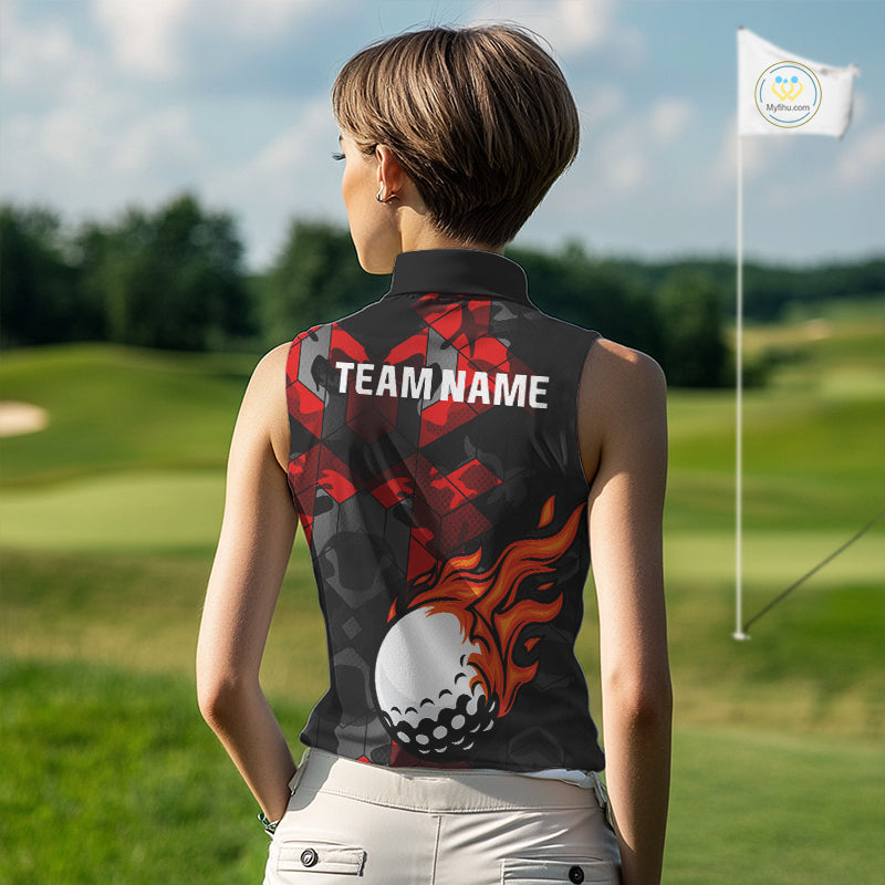 Black and Red Camo Flame Golf Ball Custom Womens Sleeveless polo shirts, golf top for ladies NQS10100