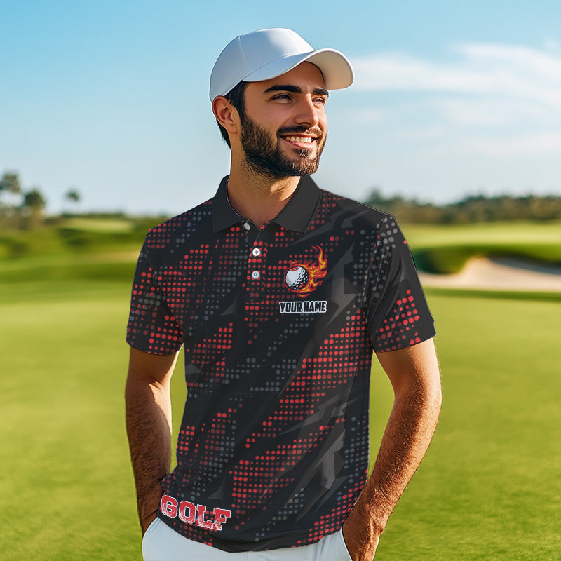 Black and Red Camo Golf Polo Shirts For Men Custom mens golf outfit team golf shirts NQS9715