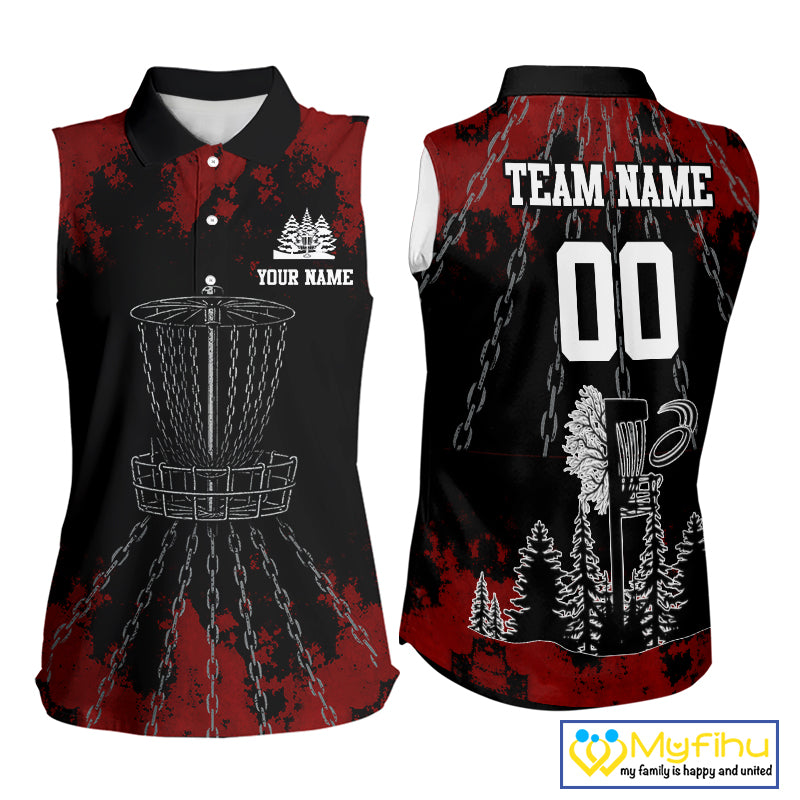 Black and Red Disc golf basket chain Women sleeveless polo shirt custom disc golf outfit for team NQS10438