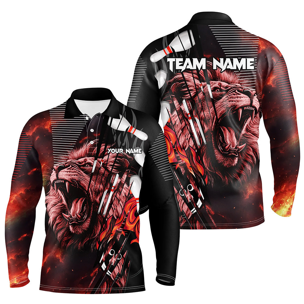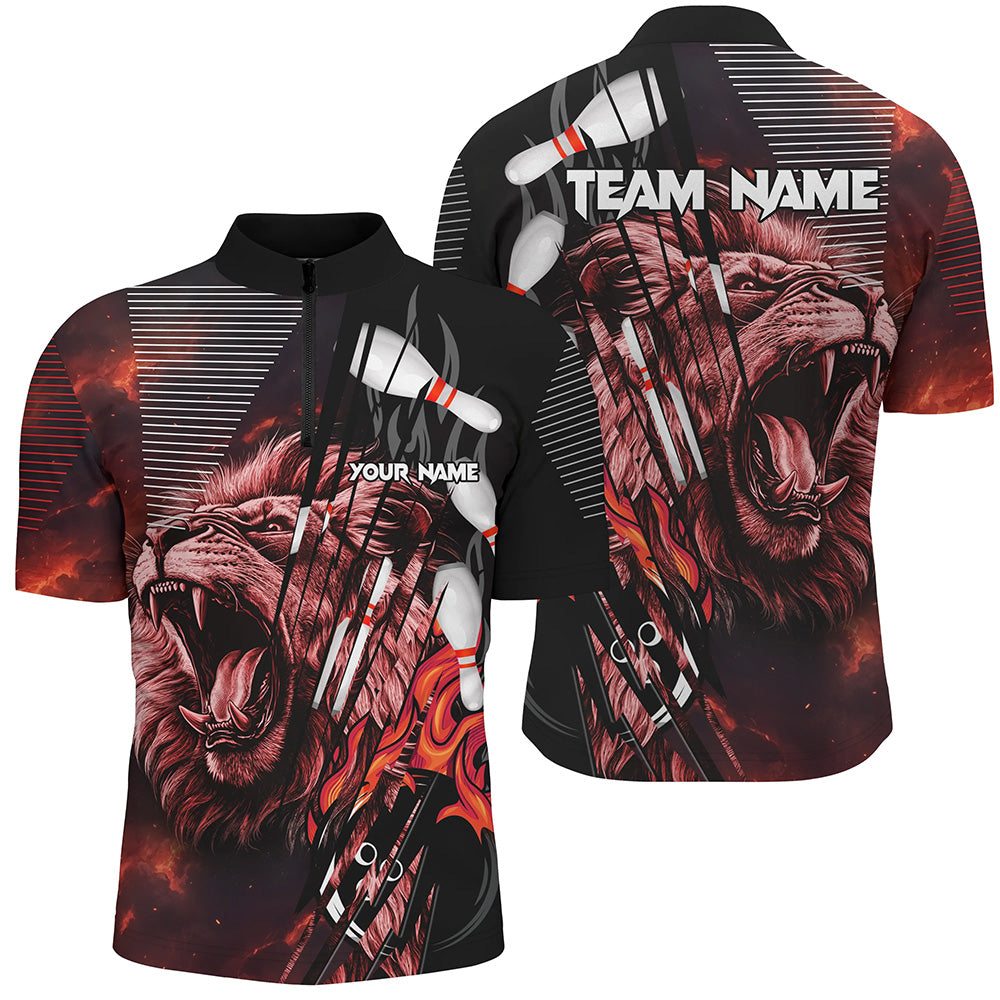 Black and Red Lion Custom Men Bowling Polo, 1/4 Zip Shirts Bowling League Shirts Team Jerseys Outfits NQS8789