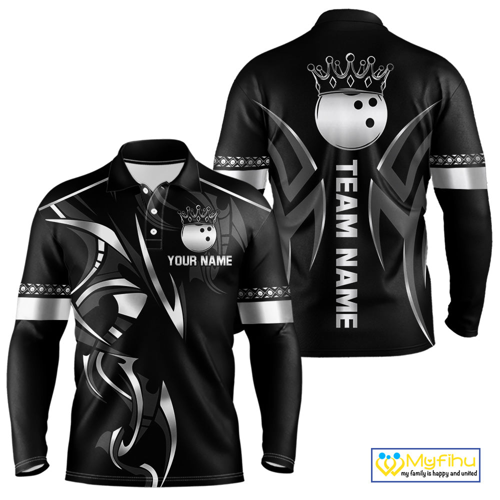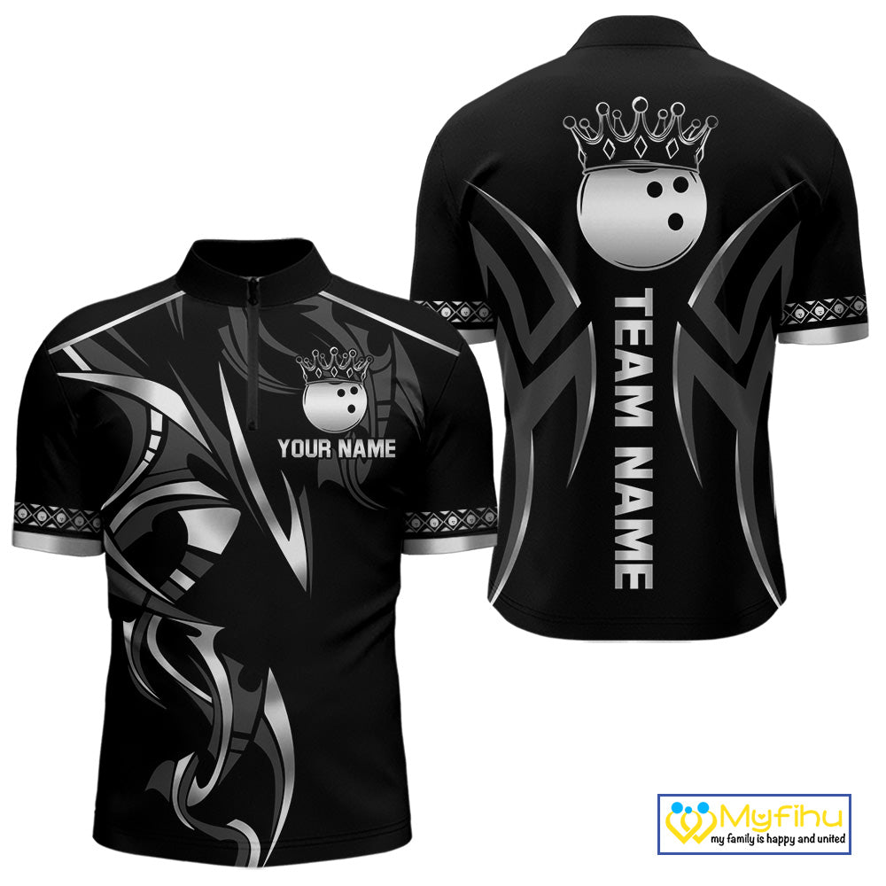 Black and Silver crown Bowling ball Polo, Quarter Zip Shirts for Men Custom Bowling Team jerseys NQS10537