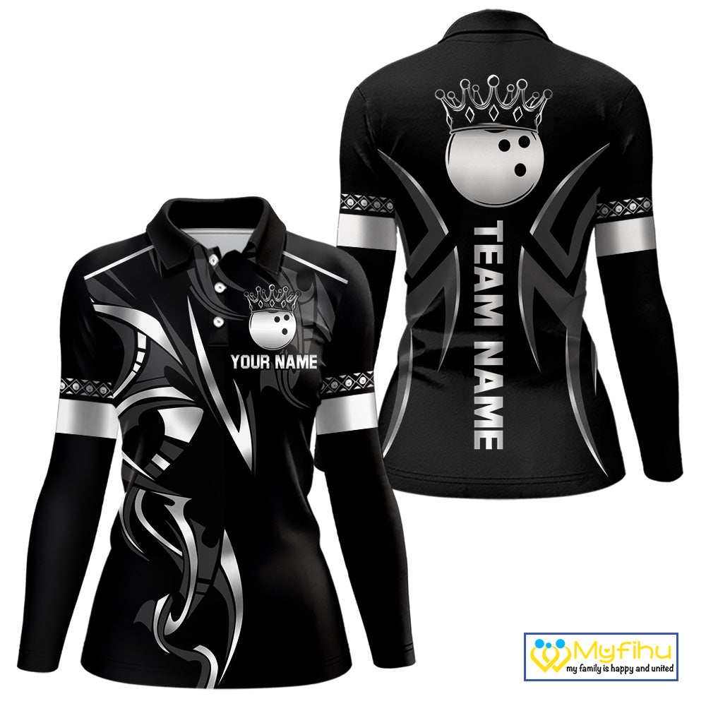 Black and Silver crown Bowling ball Polo, Quarter Zip Shirts for Women Custom Bowling Team jerseys NQS10537