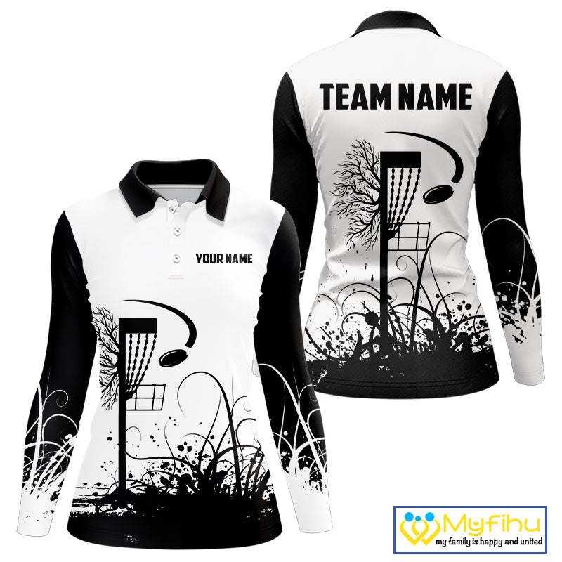 Black and White Disc Golf basket Disc golf polo shirts for women Custom team disc golf outfit NQS9946