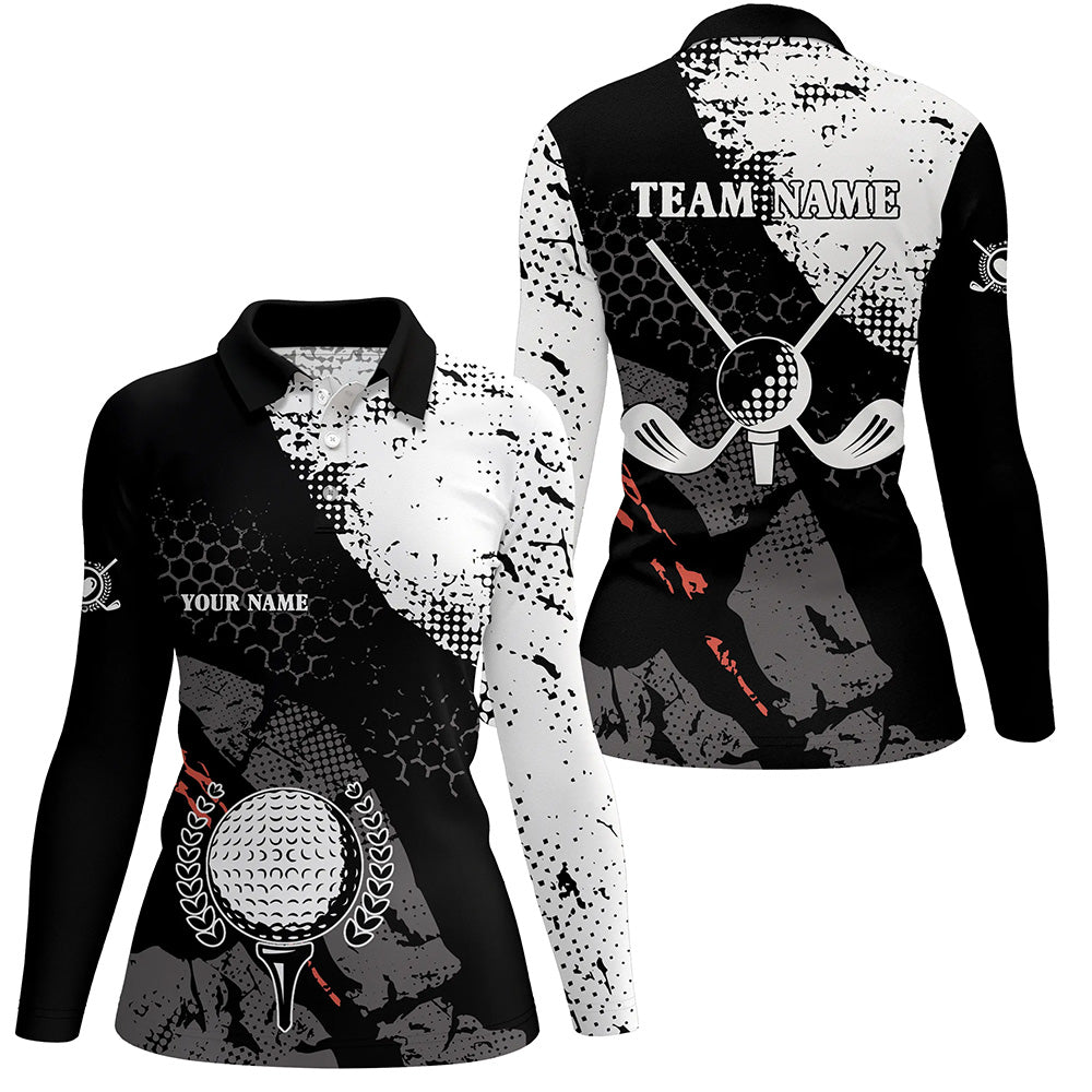 Black and white retro Womens golf polo shirts custom golf clubs team jerseys, golf attire for ladies NQS6698