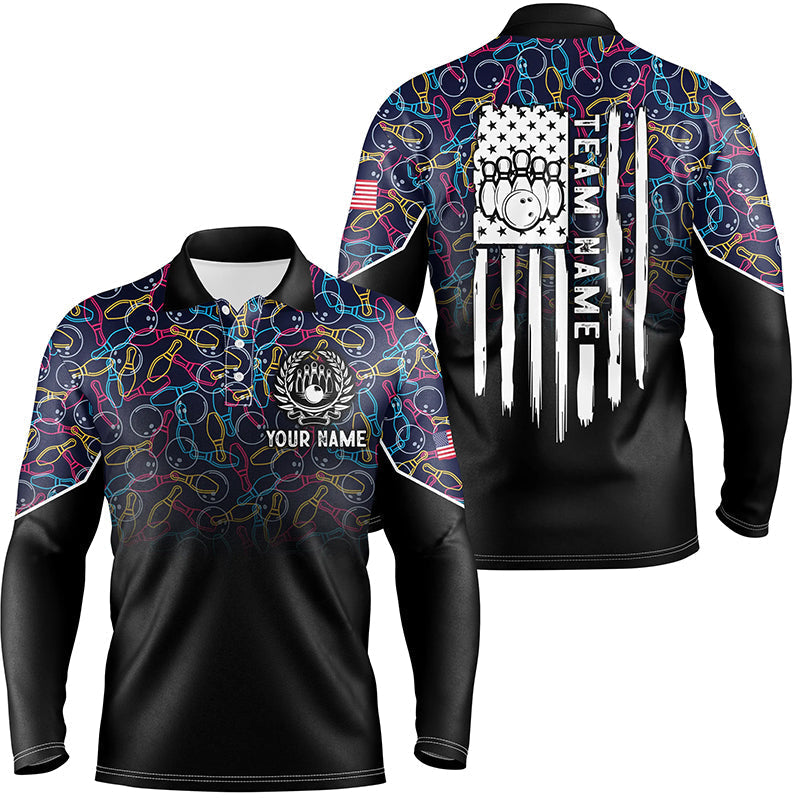 Black bowling camo Mens polo bowling shirts Custom American flag patriotic bowling team league jerseys NQS6759