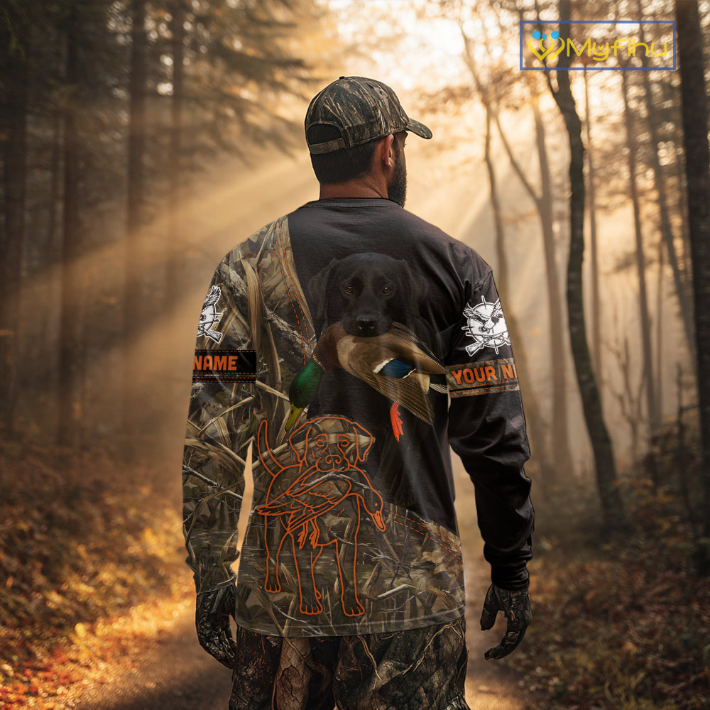 Black Lab Hunting Dog Customized Name All Over Print Shirts For Hunters, Duck Hunting Shirt NHT271