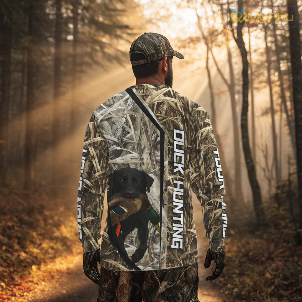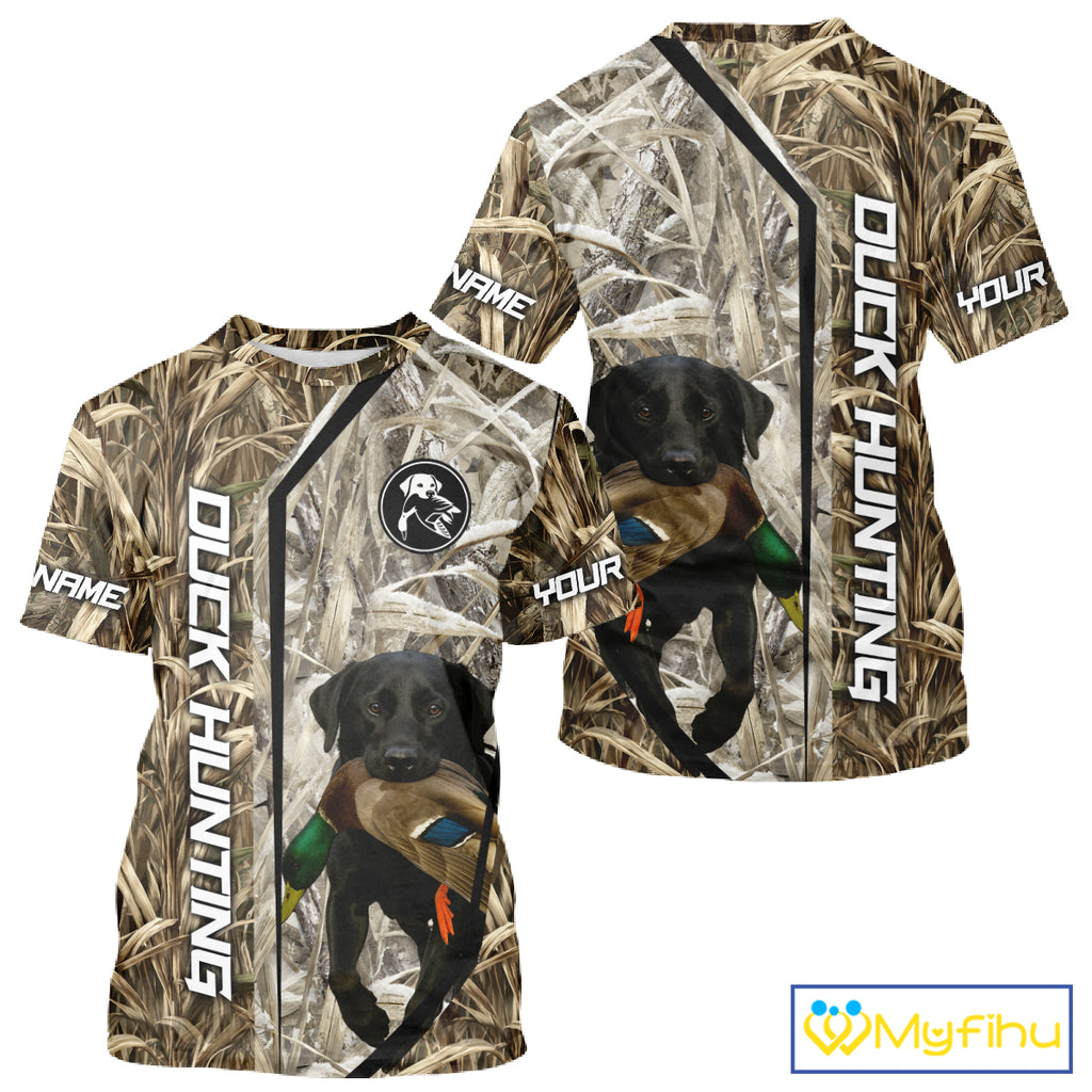Black Lab Retriever Mallard Duck Hunting Camo Shirt – Perfect Gift for Hunters NHT240
