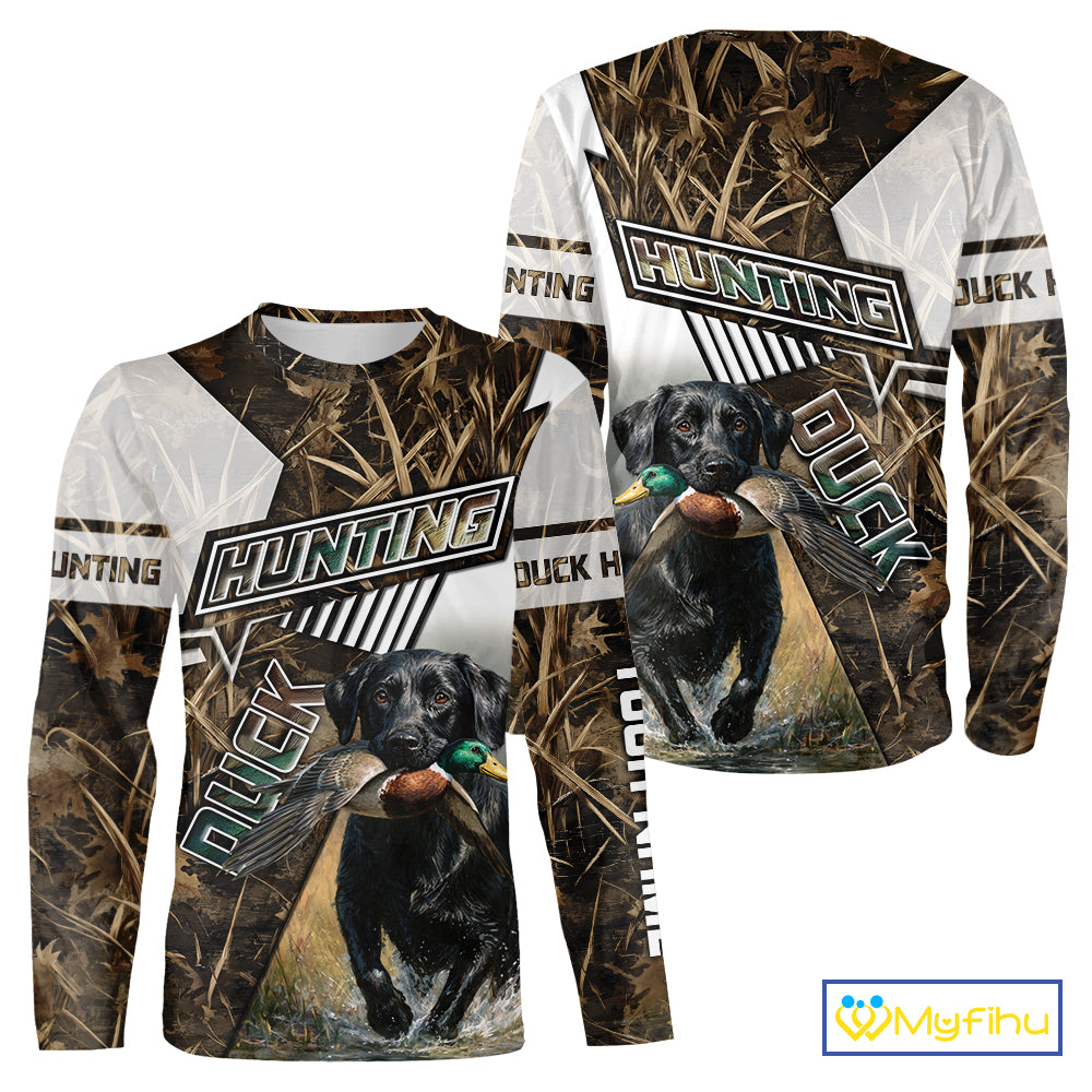 Black Lab Retriever Mallard Duck Hunting Camouflage Shirts, Duck Hunting Camo Shirt NBT199