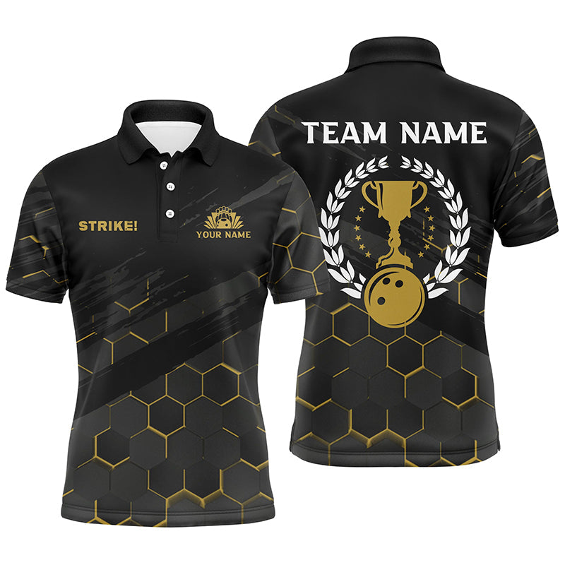 Black Mens Bowling Polo Shirts Custom bowling strike bee pattern team Mens League Jerseys NQS6703