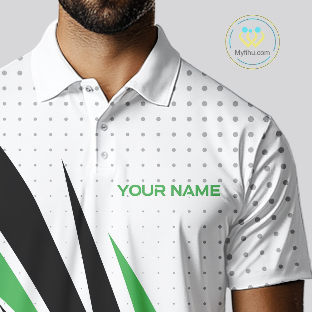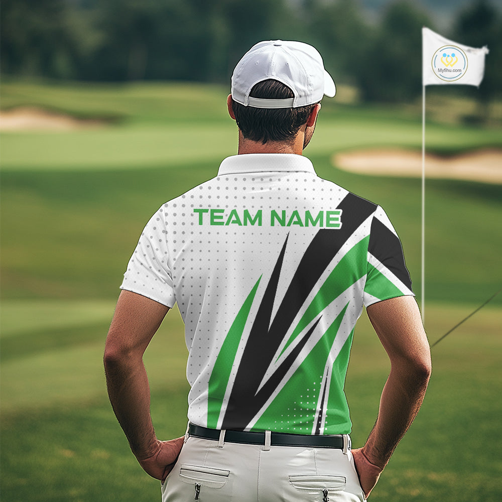 Black, White and Green Golf polo shirts For Mens custom mens golf top, unique golf gifts NQS10010
