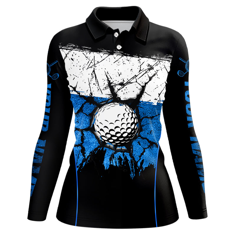 Black, White & Blue Retro broken Golf ball Women Polo shirt Custom Team golf outfit ladies golf top NQS9788