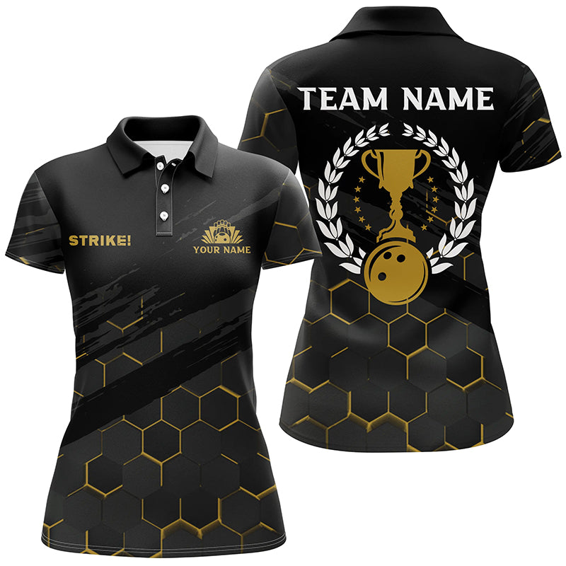 Black Womens Bowling Polo Shirts Custom bowling strike bee pattern team Ladies Jerseys NQS6703