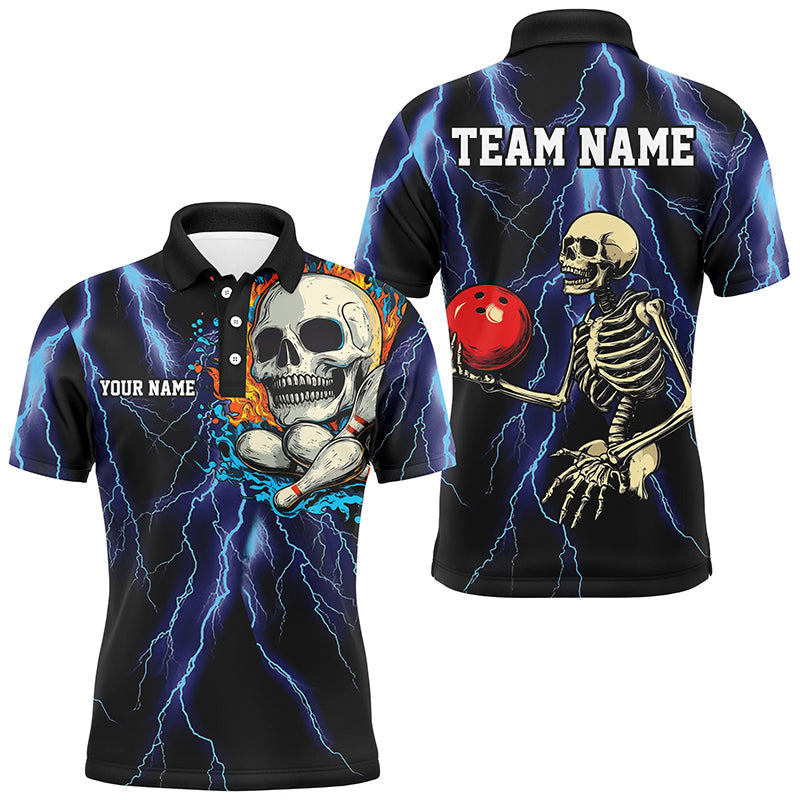 Blue lightning thunder storm skull flame Bowling Shirts For Men Custom Bowling Team Bowler Jerseys NQS8589