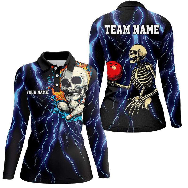 Blue lightning thunder storm skull flame Bowling Shirts For Women Custom Bowling Team Bowler Jerseys NQS8589