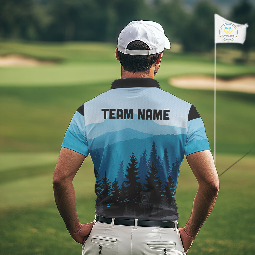 Blue pattern forest Mens Disc golf polo shirts Custom team disc golf jerseys for men NQS9943